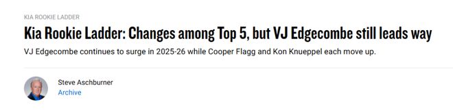 北京時(shí)間11月6日,NBA官方網(wǎng)站更新了新秀榜的排名。76人探花秀埃奇庫(kù)姆繼續(xù)排名第一?;倚艿?1號(hào)秀考沃德也仍位列第二,他也是當(dāng)初開(kāi)拓者用于交易楊瀚森的籌碼。狀元弗拉格升至第三。以下是具體排名和解析——
